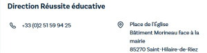 Suite à ces démarches, un certificat de scolarisation indiquant l’école d’affectation de l’enfant est transmis au directrice, qui enregistre l’inscription. Dans un second temps, la directrice de l’école prend contact avec vous pour fixer un rendez-vous de visite de l’école. Pour ce rendez-vous à l’école, munissez-vous du livret de famille et du carnet de santé de votre enfant à jour.Pour plus d’informations suivez le lien: https://www.sainthilairederiez.fr/ecoles/